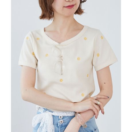 ガーリーなモチーフ刺繍を全体に散りばめたキャッチーなTシャツ。