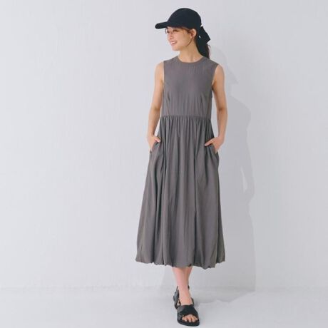 トレンド感のあるバルーンシルエットが魅力のノースリーブワンピース。