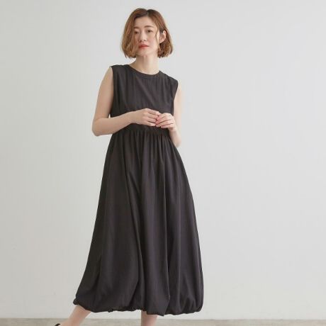トレンド感のあるバルーンシルエットが魅力のノースリーブワンピース。