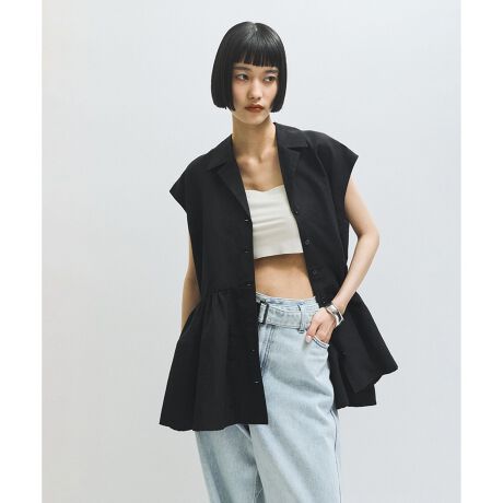 ペプラムシルエットが華やかなスリーブレスブラウス。