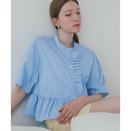 ゆったりとしたコクーンスリーブとフロントのフリルが魅力的なブラウス。
