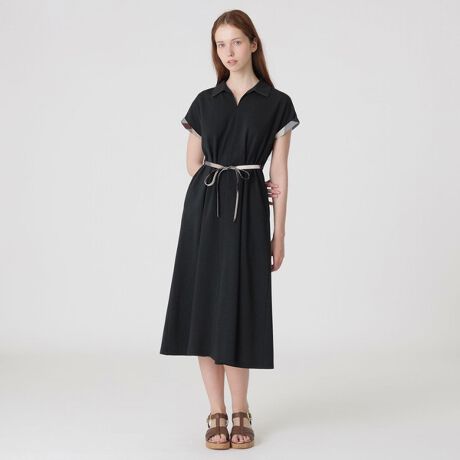 シャツ衿にVネックが抜け感のあるジャージードレスです。