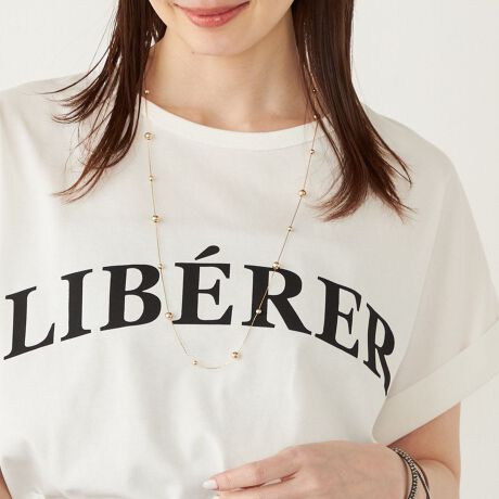 細身のチェーンにサイズ違いのボールビーズを配置したデザインが特徴のネックレス。
