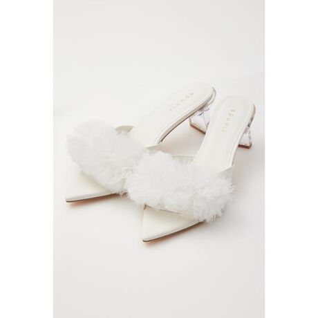 【華やかなチュールがフェミニンさを後押ししてくれるサンダル】■ポイントボリューム感のあるアッパーのチュールが大人フェミニンな印象のサンダル。アッパーは透け感のあるチュール生地をふんだんに使い、フェミニンで上品な仕上がりです。春夏のスタイリングに抜け感をプラスしながらも、華やかな印象に。ヒールはクリアヒールを採用し、つま先のラインはポインテッドトゥでシャープに仕上げてモードな雰囲気もプラスしました。高すぎないヒールで安定感があり、脱ぎ履きがさっとできるミュールタイプなのも嬉しいポイントです。■ディテール華やかでフェミニンな印象の中に、つま先やヒールでモードさをプラス。他にはない足元を華やかに演出してくれるサンダルです。■スタイリングシンプルなスタイリングに合わせるだけでもOK!コーディネートのポイントになるアイテムです。■商品のお気に入り登録お気に入りアイテムの再入荷・在庫1点などの通知を受け取ることができます。[注意事項]※画像の商品はサンプルです。実際の商品と仕様、加工が若干異なる場合があります。※画像の商品は光の照射や角度、お使いのモニター環境により、実物と色味が異なる場合がございます。※着用、お取り扱いの際は、アテンションタグをご確認ください。
