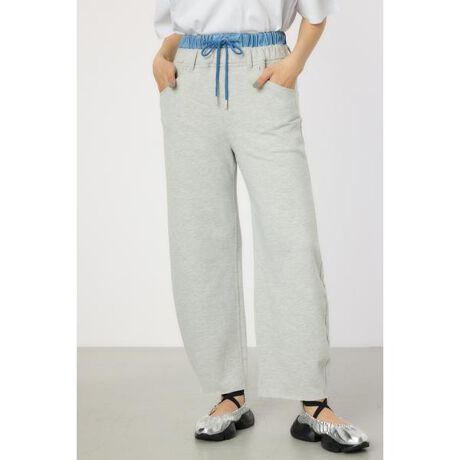 ■ポイントウエストの切り替えデザインがトレンドライクなスウェットパンツ。オールシーズン着用でき、着回し力が高い万能パンツです。■ディティール脚部分はカーブシルエットに仕上げました。重ね着のようなダブルウエストデザインになっており、ウエストにはスピンドルを通し、後ウエストにはデニムと同様の紙パッチ、後ポケットには刺繍入りピスネームを付けました。■スタイリングどんなアイテムとも相性抜群ですが、ウエストのデザインがポイントになるので短丈のトップスやタックインスタイルがおすすめです。■生地しっかりと厚みのある30/10CVC裏毛(綿高混率のポリエステル混紡糸を使用したパイル状生地)を使用しています。ウエストポケット、コインポケット、虚ポケットには10ozインディゴデニムを使用しています。デニム部分は、加工の上がり方に個体差がある場合がありますが、製品の特性となりますのでご了承ください。デニム部分は、経年劣化による色落ちが起こる可能性があります。■透け感:なし■光沢感:なし■伸縮性:あり■裏 地:なし[注意事項]※画像の商品はサンプルです。実際の商品と仕様、加工が若干異なる場合があります。※画像の商品は光の照射や角度、お使いのモニター環境により、実物と色味が異なる場合がございます。※着用、お取り扱いの際は、アテンションタグをご確認ください。