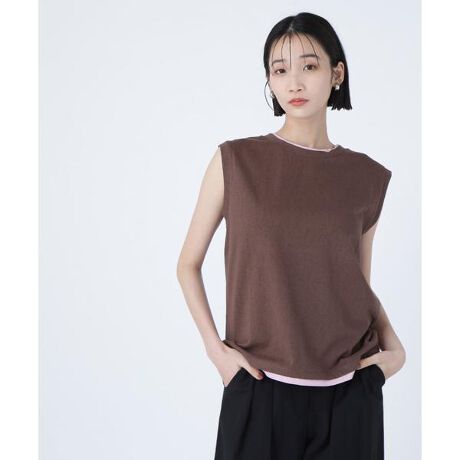 レイヤードノースリーブカットソー