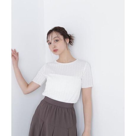 カジュアル見えしすぎず、素材感が映えるコンパクトトップス。シンプルなTシャツ型なので単品使いもレイヤードにも着回せるデザインです。<素材>レース見えするカットジャガード素材を使用。しっかりテンションある素材でコンパクトシルエットが決まる素材です。<詳細>仕様・開閉なし裏地・なし透け感・なし / 光沢・なし / 伸縮性・なし生地の厚さ・普通※モデルの着用画像の場合、光の当たり具合により、実際の色味と異なって見えることがございます。色味は、商品単体の画像をご参照ください。