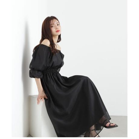 袖を2重にしたバルーンスリーブが大人フェミニンなワンピース。襟ぐりはそのままでも、オフショルダーとしてもデコルテ見せを調整できます。ウエストはゴム仕様でラクな着心地です。1枚でコーディネートに迷うことなく着ていただけます。