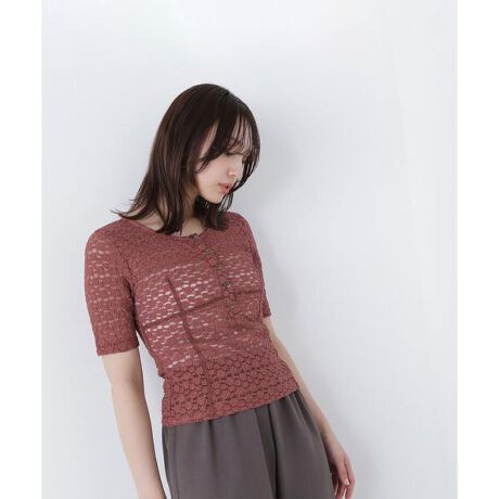着心地の良いレースカットソーを使ったトップスは、ヘンリーネックに付けたボタンがポイント。程よいフィット感でボトムスにインしやすいです。身頃は切り替えを入れているのでスタイルアップを叶えてくれます。<素材>レースカットソー素材を使用しています。<詳細>仕様・前ボタン裏地・なし透け感・あり / 光沢・なし / 伸縮性・あり生地の厚さ・薄手※モデルの着用画像の場合、光の当たり具合により、実際の色味と異なって見えることがございます。色味は、商品単体の画像をご参照ください。