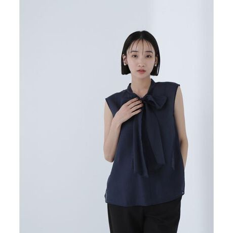 大きなリボンタイがポイントのシアーブラウスです。やや肩先をカバーしてくれるノースリーブの袖丈で大人っぽい印象に。ボトムスに合わせて裾はアウトでもインでも着られる着丈です。<素材>優しいシャイニー感のあるシアー素材を使用。ややハリがありリボンの形もふんわり決まる素材です。<詳細>仕様・前ボタン裏地・なし透け感・あり / 光沢・あり / 伸縮性・なし生地の厚さ・薄手※モデルの着用画像の場合、光の当たり具合により、実際の色味と異なって見えることがございます。色味は、商品単体の画像をご参照ください。