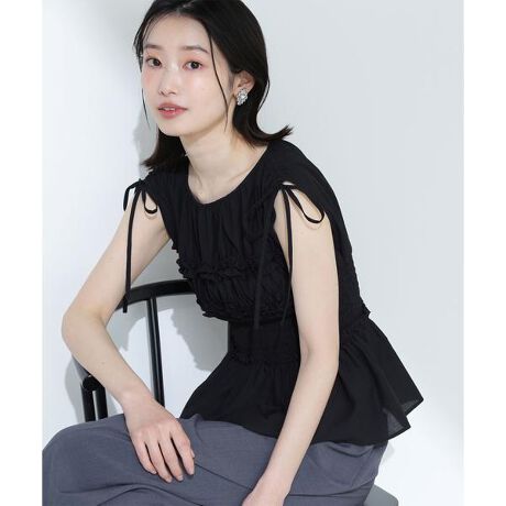 シャーリングペプラムブラウス