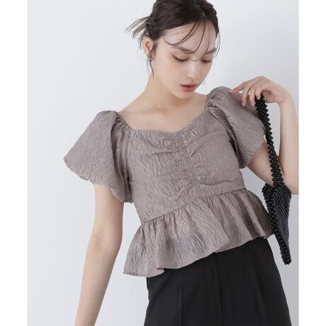 ショート丈のバルーンスリーブブラウスです。華やかな素材感とふんわりしたシルエットがフェミニンで存在感のあるデザイン。コーディネートに合わせやすいオフカラーと黒、落ち着いた雰囲気のブラウンカラーの3色展開です。<素材>表面感のあるジャガード素材を使用しています。<詳細>仕様・開閉なし裏地・あり透け感・なし / 光沢・ややあり / 伸縮性・なし生地の厚さ・普通※モデルの着用画像の場合、光の当たり具合により、実際の色味と異なって見えることがございます。色味は、商品単体の画像をご参照ください。