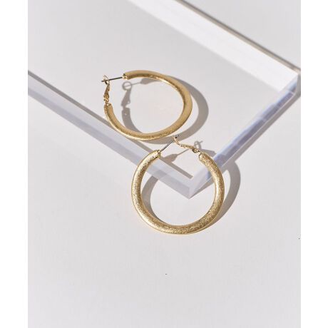 肌馴染みの良いマットな質感のフープピアス。シンプルながらもほんのりカーブを効かせたニュアンスデザインが女性らしさを引き立てます。やや大ぶりなサイズ感でコーディネートのアクセントにもぴったり。カジュアルからきれいめまで幅広く合わせていただけるおすすめのアイテムです。※モデル着用画像は、光の当たり具合で色味が違って見える場合がございます。※お使いのモニター環境によって商品の色味が違って見える場合がございます。