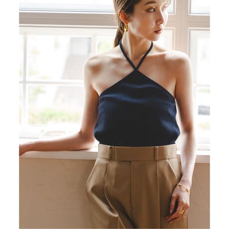 トレンド感のあるホルターネックを採用したタンクトップ。