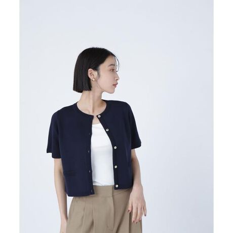 NBBで人気のカーディガンが半袖になって登場!シルクを含んだ素材はそのまま、清涼感のあるキレイめな素材で仕上げています。今回タック編みのポケットは飾りにして、よりキレイめな印象のデザインに。羽織にもボタンを留めてプルオーバーとしても着こなせます。お気に入りのカラーが見つかる豊富な色展開も魅力です。<素材>シルクを含んだツヤのあるキレイ目な総針素材を使用。清涼感のあるタッチです。<詳細>仕様・前ボタン裏地・なし透け感・なし / 光沢・なし / 伸縮性・あり生地の厚さ・普通※モデルの着用画像の場合、光の当たり具合により、実際の色味と異なって見えることがございます。色味は、商品単体の画像をご参照ください。
