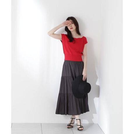 昨年人気だった人気アイテムから今年らしい新色が登場!ギャザーをふんだんに入れたティアードスカートです。後ろウエストはゴム仕様のため楽なはき心地。コーディネートしやすいカラーとシンプルなデザインなので、夏ニットやTシャツなど、様々なトップスと着用いただけます。