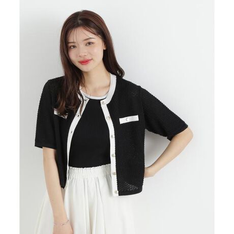 これからの季節にぴったりな半袖ニットアンサンブルです。カーディガンは編地が愛らしく、金属ボタンを使ってきちんと見えを演出。インナーはタンクトップ仕様なので下着のラインが気になりにくく、単品でも着回せるデザインに。スカートもデニムパンツも合うので、ONにもOFFスタイルにも着ていただけます。