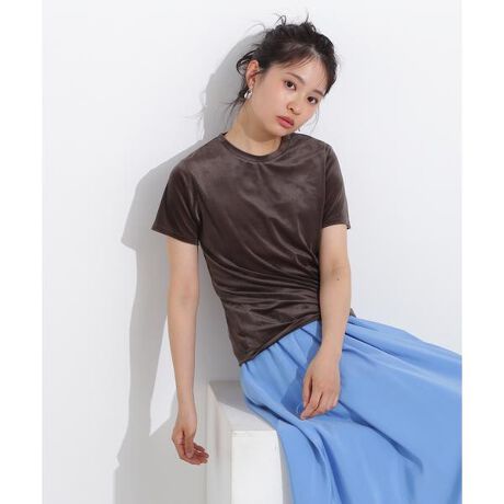 程よい透け感のあるベロア素材を使用したベーシックなTシャツ。フィットしすぎない少しゆとりのあるサイズ感で、ボトムスを選ばず着ていただけます。ジャンパースカートなどのレイヤードにも着回せるので1枚あると便利なデザインです。<素材>程よい透け感のカットソーベロア素材を使用しています。<詳細>仕様・開閉なし裏地・なし透け感・なし / 光沢・あり / 伸縮性・あり生地の厚さ・普通※モデルの着用画像の場合、光の当たり具合により、実際の色味と異なって見えることがございます。色味は、商品単体の画像をご参照ください。