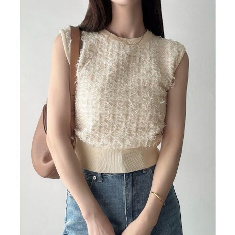 Meiru ツイードフリンジノースリーブニット