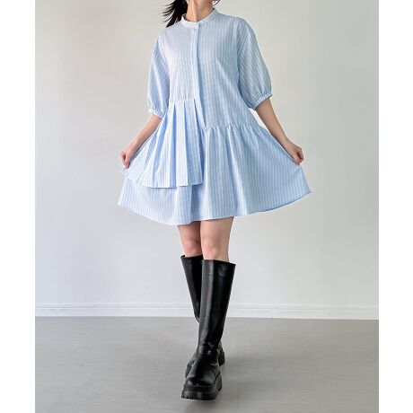 ストライプアシメティアードチュニック (薄手、裏地なし)