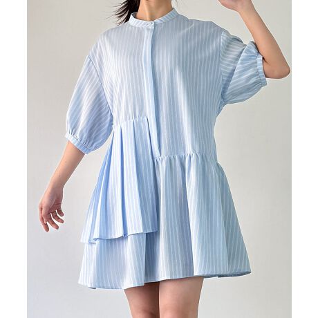 ストライプアシメティアードチュニック (薄手、裏地なし)