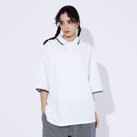 通気性がよく、軽く、そして丈夫なカノコ素材のワイドシルエットポロシャツです。清潔感がある素材の為、これからの時期にぴったりな1枚。