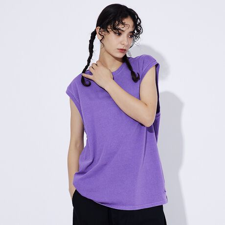 ピグメント染め加工を施しユーズド感溢れるノースリーブは、インナーとしても夏のメインアイテムとしても使いやすいです。