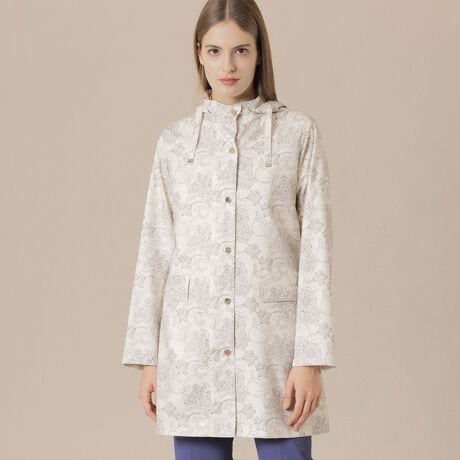 取り外し可能なフード付きレインコートです。優雅なシルエットで軽快な印象です。コートを収納出来るポーチはMACKINTOSH LONDONのサインがプリントされています。背裏付きです。
