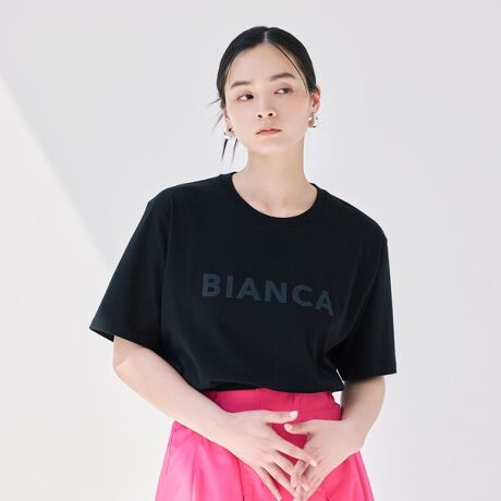 一見シンプルながら、BIANCAロゴが程よいアクセントに。デニムやスカートなど、様々なボトムスと相性が良く、オンオフ問わず活躍する一枚です。
