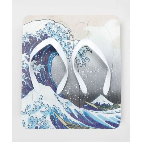 [型番:7LIP5201-2025]浮世絵の柄を大胆に描いた足袋型ビーチサンダル。枠から取り外してビーチサンダルとして履けるのはもちろん、インテリアとしてそのまま飾ることも出来ます。足先が足袋型になっているので、足袋靴下との相性もばっちり。夏の和装や浴衣にぴったりです。フラットに収納出来るので、アウトドアや旅行のお供、お土産としてもおすすめです。