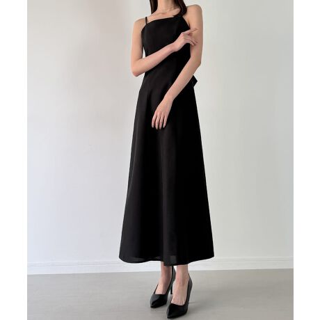 リネンライクバックリボンキャミワンピース(薄手、裏地なし)