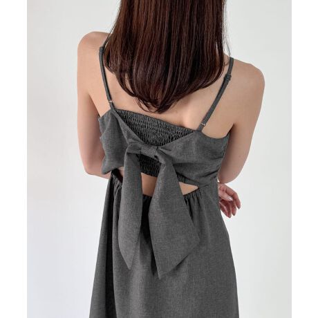 リネンライクバックリボンキャミワンピース(薄手、裏地なし)