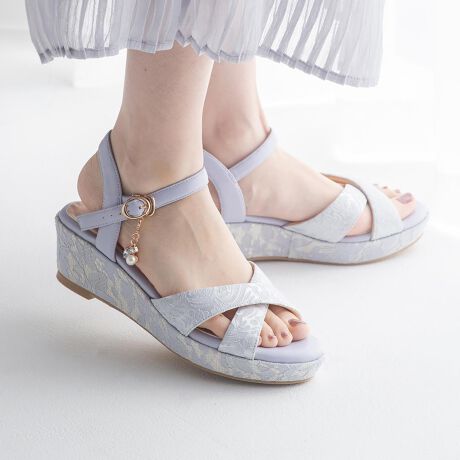 【25春夏新作】<ふわさら>2WAYチャーム付きストラップウエッジサンダル