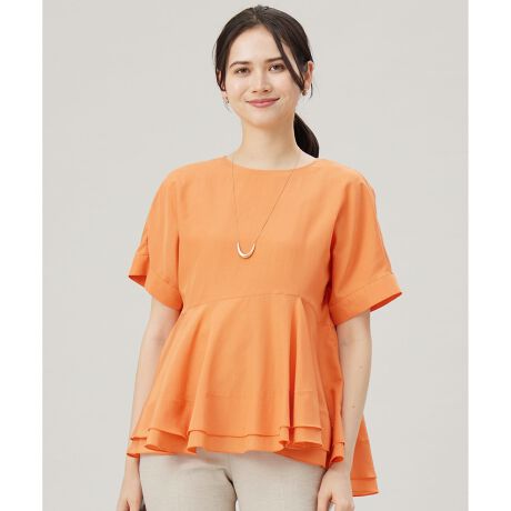 イレギュラーな切り替えがポイントのペプラムブラウス■デザインバストの下からイレギュラーな切り替えを入れた、たっぷりとしたフレアシルエットのペプラムブラウスです。ウエストよりも少し上の位置で切り替えることで、お腹や腰周りを程よくカバーしてくれます。トレンドの短めの着丈なので、ボリュームのあるワイドパンツと好相性です。程よくシアーな素材で生地の重なりで生まれる陰影が奥行を感じられ、1枚でサマになるブラウスです。シンプルなボトムと合わせるだけで華やかなコーディネートが完成します。■素材タテ糸にポリエステルの極細糸を使用し、ヨコ糸にセルロースと綿と麻の混紡糸を打ち込んだ透け感のあるシアー素材です。タテ糸のポリエステルが上品な透明感と適度なハリ感を醸し出しており、ヨコ糸でナチュラルなドレープ感を表現した程よく落ち感のある素材です。■同素材アイテムフリルディティールブラウス(BLWRGM0506)