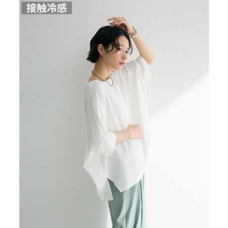 ゆったりシルエットがスタイリングに抜け感を演出するドルマンプルオーバー。コットンベースの接触冷感素材で、暑い季節もひやっと爽やかな着心地を叶えます。バックに加えたタックディテールが後ろ姿におしゃれなアクセントをプラス。ベーシックな無地に配色ボーダー柄を含めた、豊富なカラーバリエーションにも注目です。
