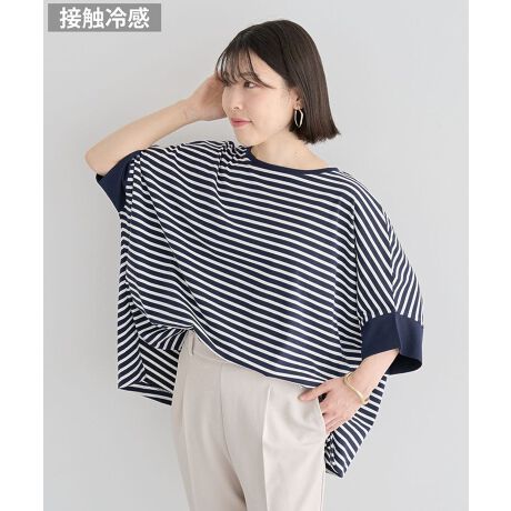 #接触冷感#ドルマンプルオーバー#コットン素材#涼感素材#ゆったりシルエット#体型カバー#着心地抜群#バックタック#サイドスリット#着回しアイテム#ラフ#夏#ボーダー#無地トップス