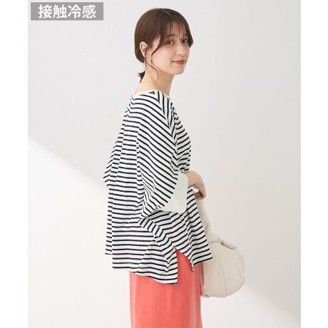 ゆったりシルエットがスタイリングに抜け感を演出するドルマンプルオーバー。コットンベースの接触冷感素材で、暑い季節もひやっと爽やかな着心地を叶えます。バックに加えたタックディテールが後ろ姿におしゃれなアクセントをプラス。ベーシックな無地に配色ボーダー柄を含めた、豊富なカラーバリエーションにも注目です。