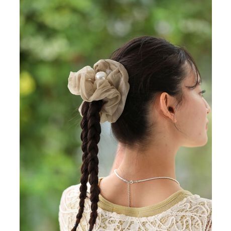 透け感のある素材で仕立てたヘアシュシュ。大粒パールがしなやかに揺れ、ヘアアレンジを華やかに演出します。程よくボリュームがあるので手首に巻くのもおすすめ、ご自身用はもちろん、ギフトにしても喜ばれるおすすめのアイテムです。※モデル着用画像は、光の当たり具合で色味が違って見える場合がございます。※お使いのモニター環境によって商品の色味が違って見える場合がございます。