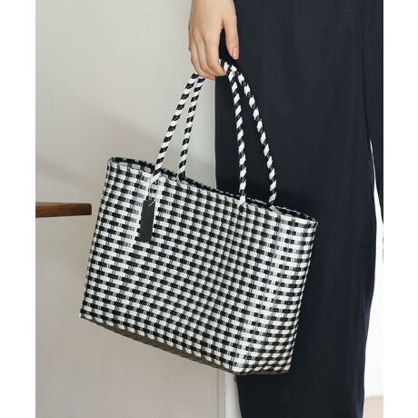 軽量素材のシーズナルなカゴバッグ。グラデーションのようなチェック柄やブロッキングデザインがスタイリングポイントにも最適なお仕立てです。しっかりとマチのある大きめサイズでお出かけからレジャーまで幅広く活躍。春夏スタイルにプラスワンするだけで軽やかに印象を変えてくれるおすすめのアイテムです。※モデル着用画像は、光の当たり具合で色味が違って見える場合がございます。※お使いのモニター環境によって商品の色味が違って見える場合がございます。