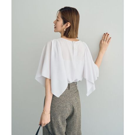 エレガントに揺らめくハンカチヘムスリーブが目を惹くデザインブラウス。