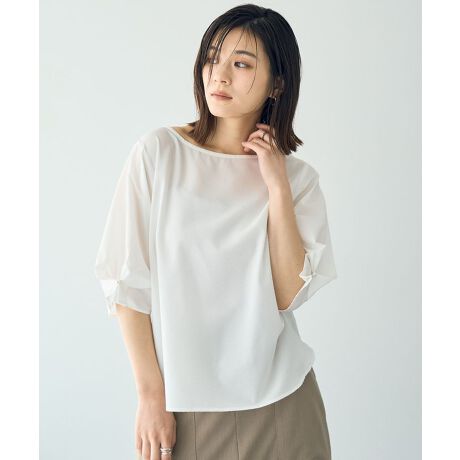 ゆとりのあるボックスフォルムにタックでボリュームを出した立体感ある袖がおしゃれなデザインです。