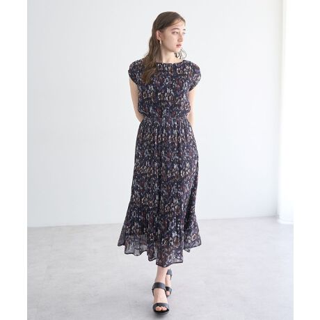 フラワー柄プリーツワンピース