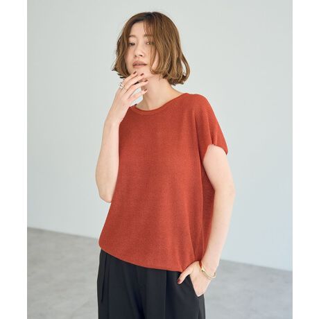 煌めくラメがコーディネートを彩るクルーネックニットプルオーバー。