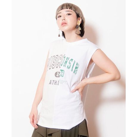 カレッジロゴTをリメイクした様なタンクトップ。