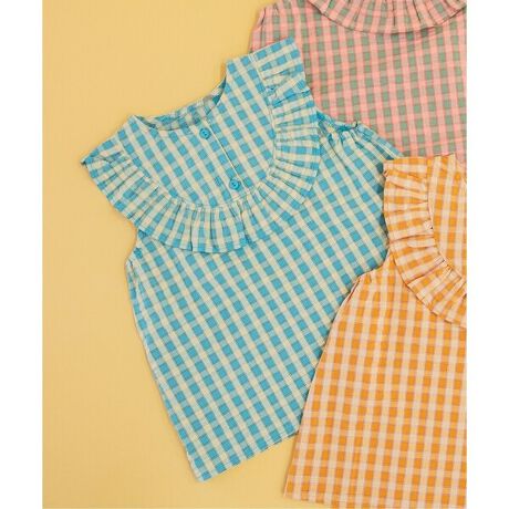 BREEZE(ブリーズ)のシャツ・ブラウス「WEB限定 チェックフリルチュニック」は、お出かけにも普段使いにも着まわせるデザインが人気!色や柄、シルエットでかわいさを引き出します♪
