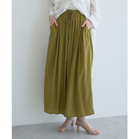 スカートのようなたっぷりと分量を付けた幅広レッグがラフに合わせやすいデザインです。
