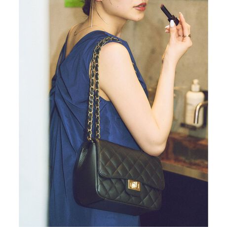 シンプルなスタイリングにもゴールドチェーンがアクセントになることで、どんな装いにもマッチし上品な印象に仕上げてくれるバッグです。