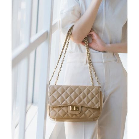 シンプルなスタイリングにもゴールドチェーンがアクセントになることで、どんな装いにもマッチし上品な印象に仕上げてくれるバッグです。