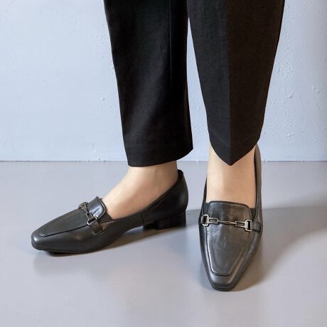 スクエア調で足入れはゆったり3E幅なのに、細く、長く見えるようなトゥ先にし上品な印象に