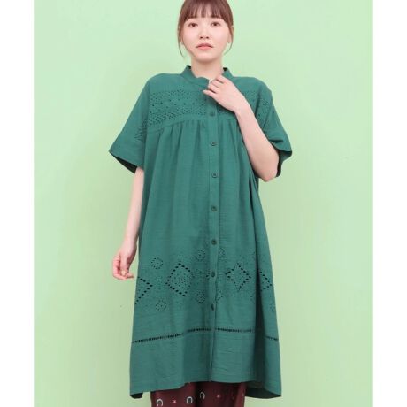 カットワーク刺繍をたっぷり施したシャツワンピース